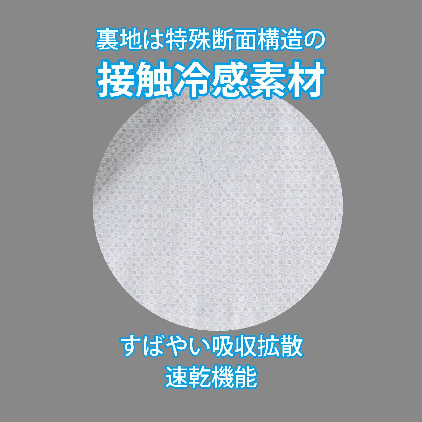 裏地は特殊断面構造の接触冷感素材、すばやい吸収拡散・速乾機能。